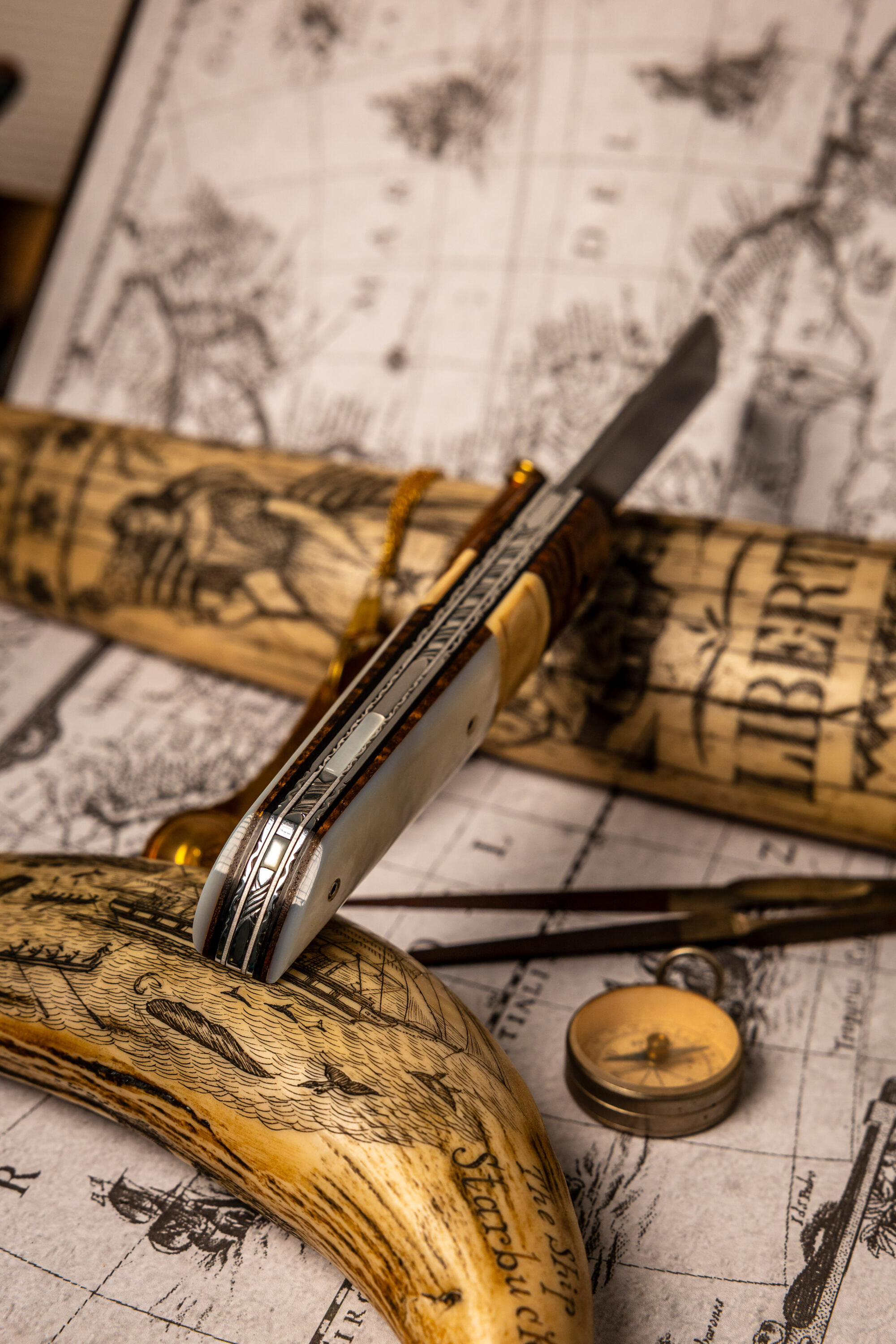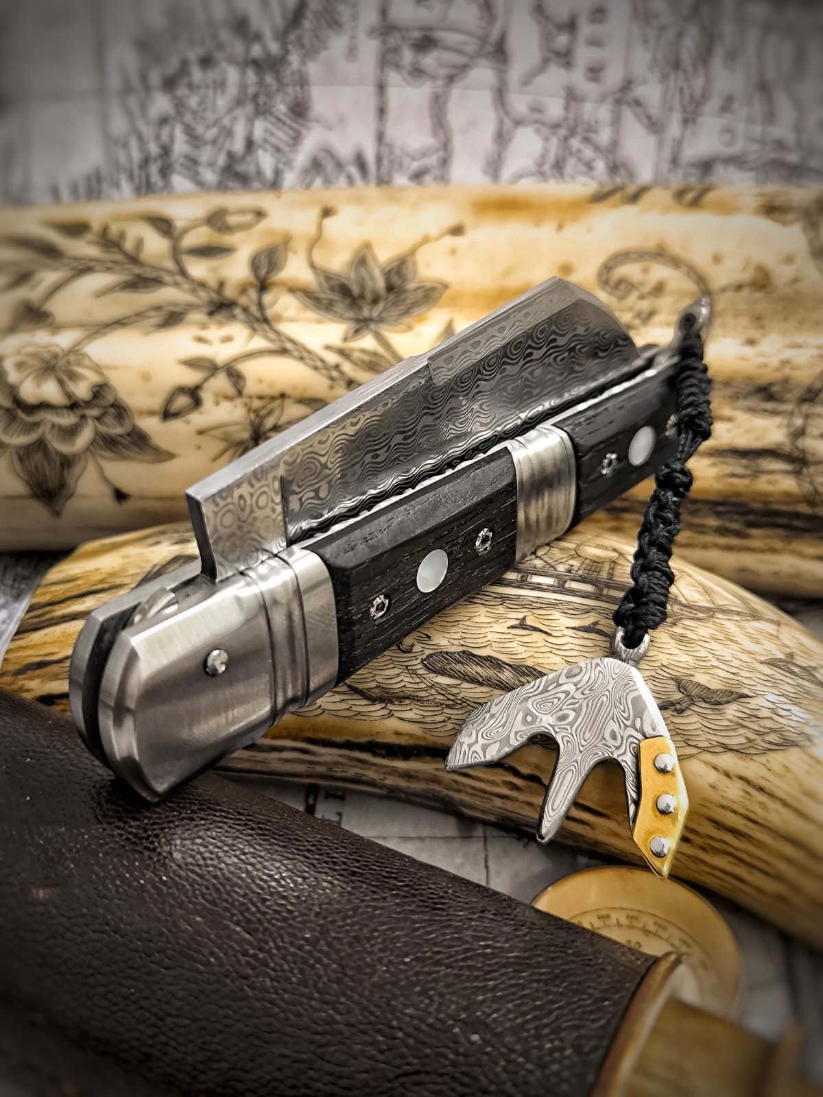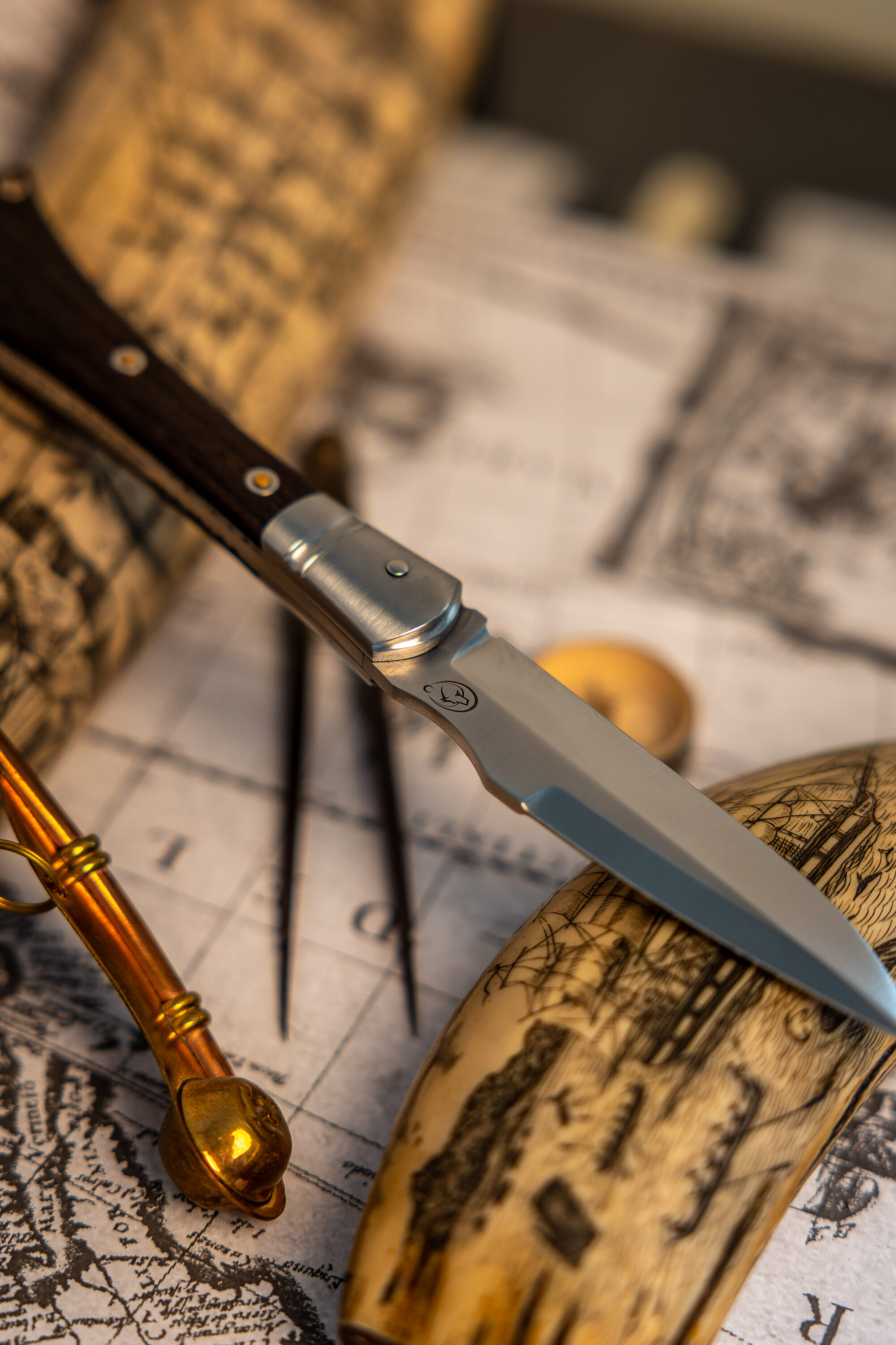 J’ai décidé de créer un couteau identitaire et local fabriqué dans mon atelier en Bretagne, ce couteau se nomme Achab, il est inspiré des plusieurs couteaux de marins et de bateliers, le London, le Seurre, mais aussi un petit couteau campagnard le Tiré-droit. Ce qui fait de lui un couteau à la fois marin et terrien… La subtile association de la Bretagne… Terre et mer, Armor et Argoat.