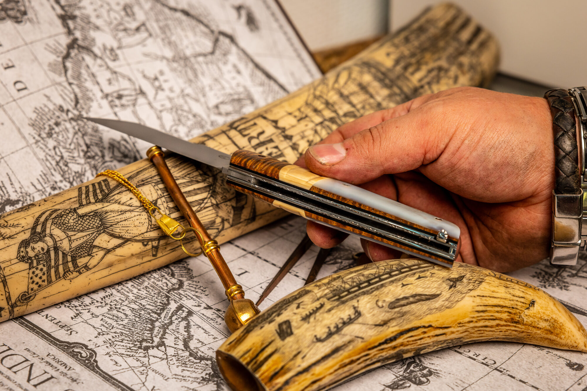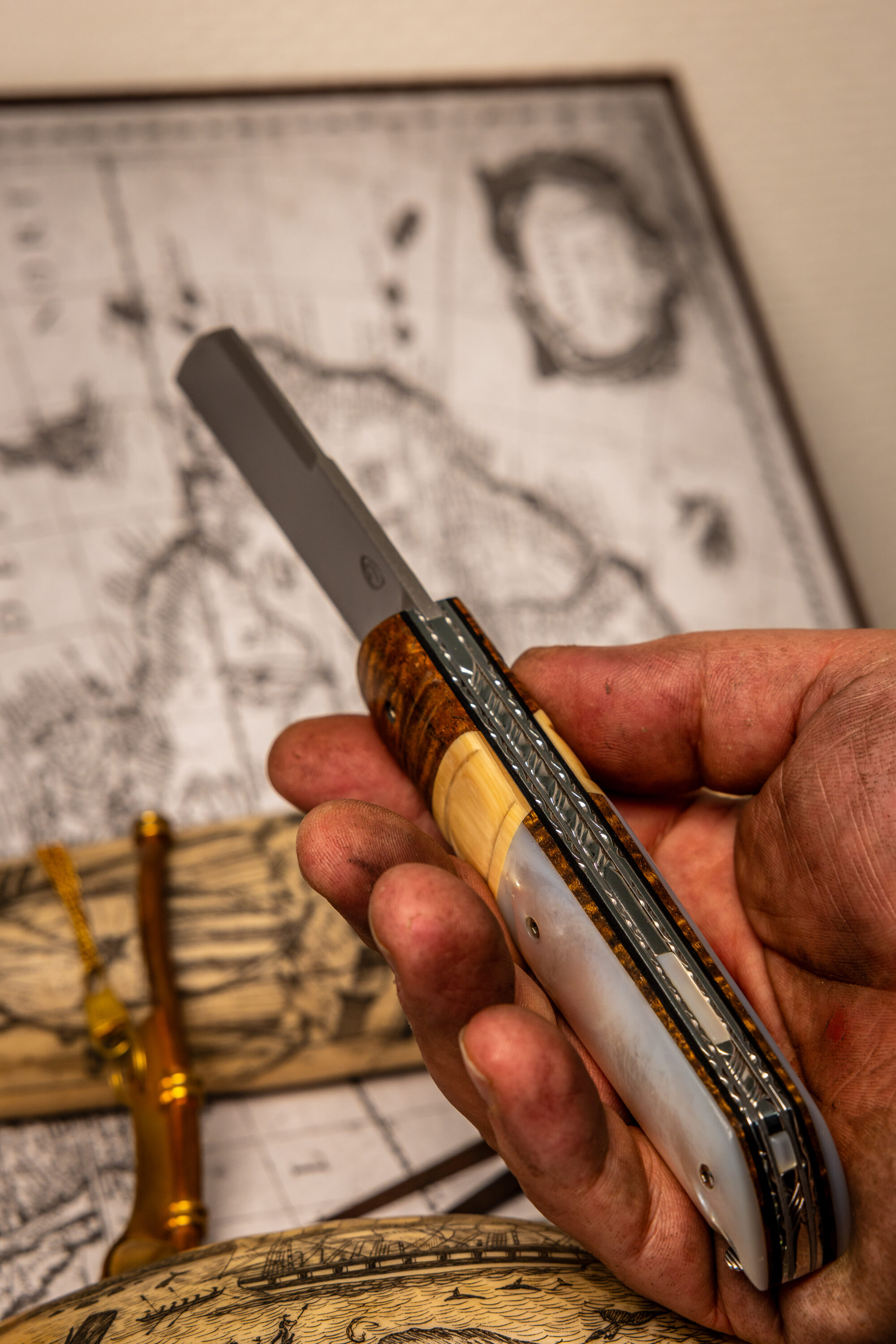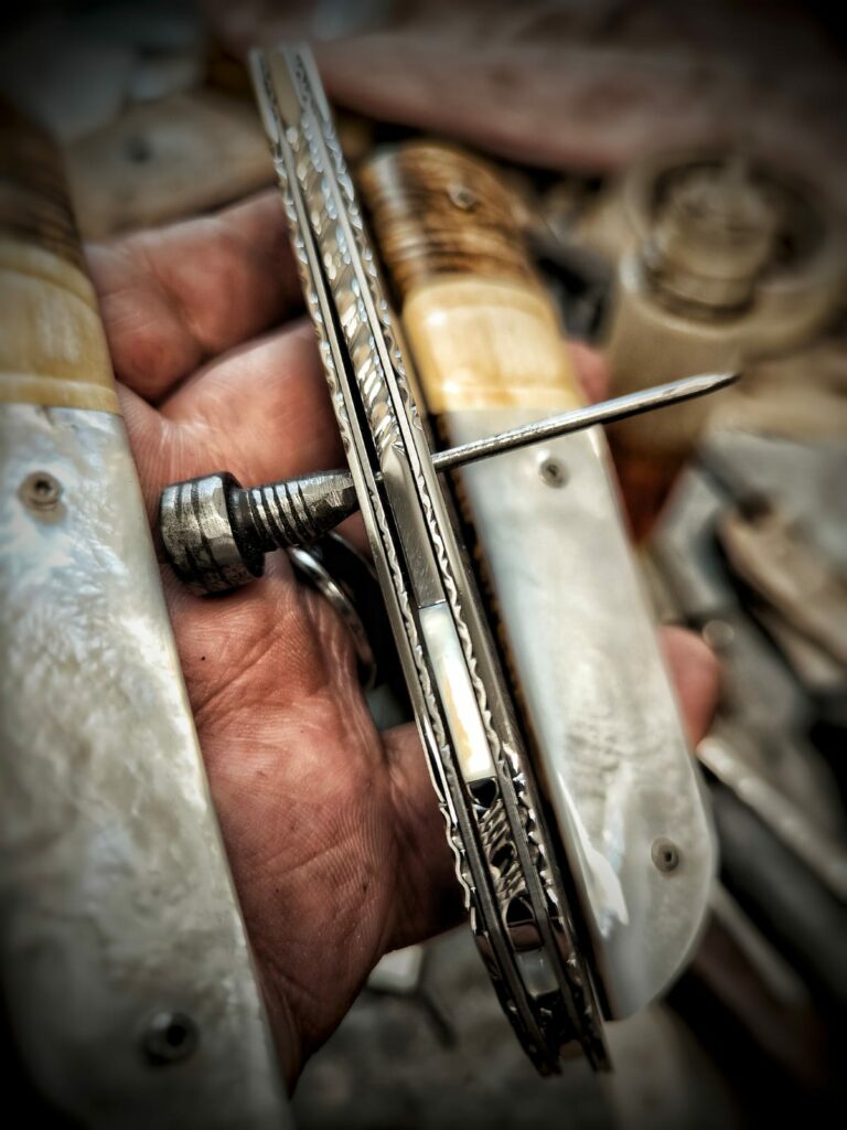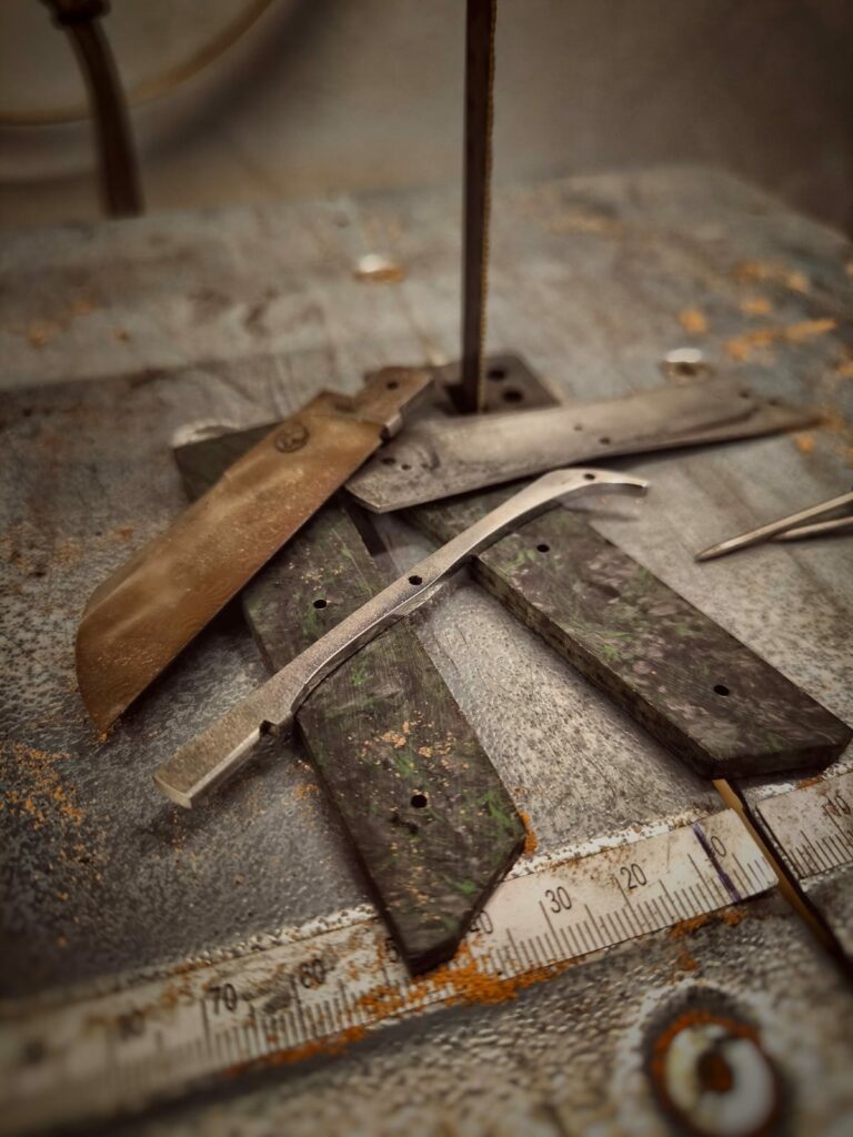 En parallèle j’ai énormément appris avec des couteliers artisans du bassin Thernois, anciens ou jeunes et aussi différents couteliers implantés dans d’autres régions de France.