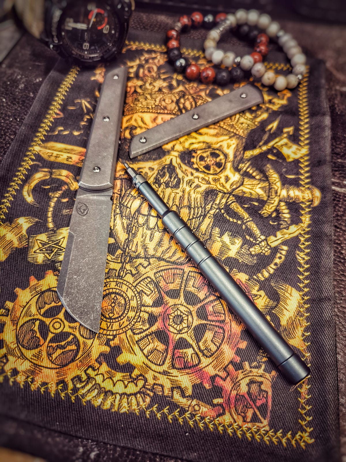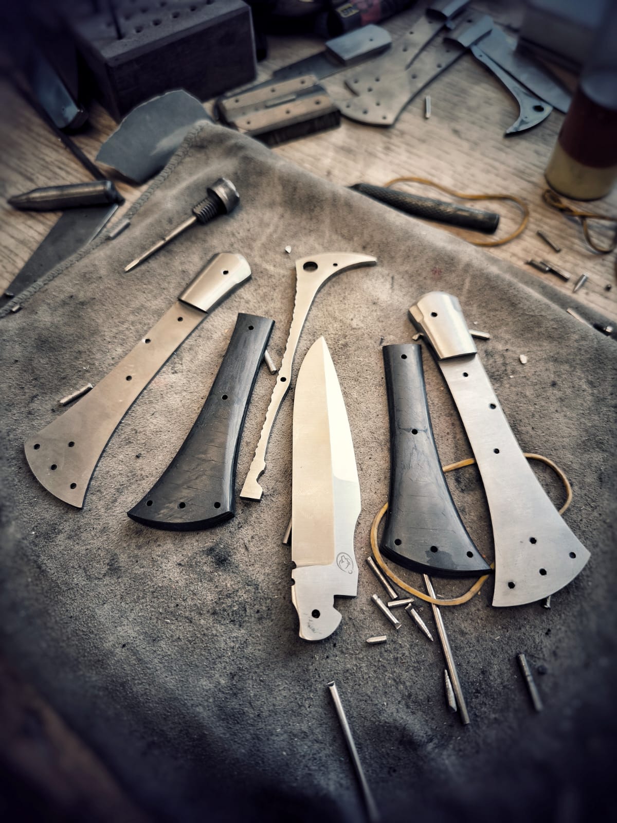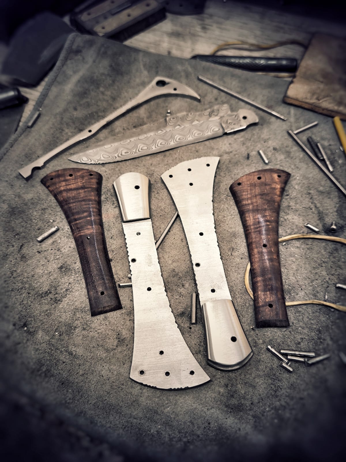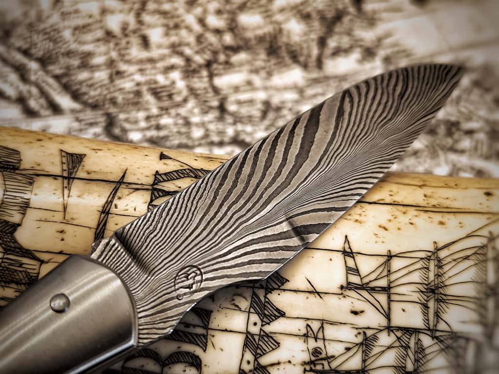 Je ne suis pas forgeron, la plupart des damas de l’atelier sont des créations d’entreprises spécialisées ou de collègues forgerons.